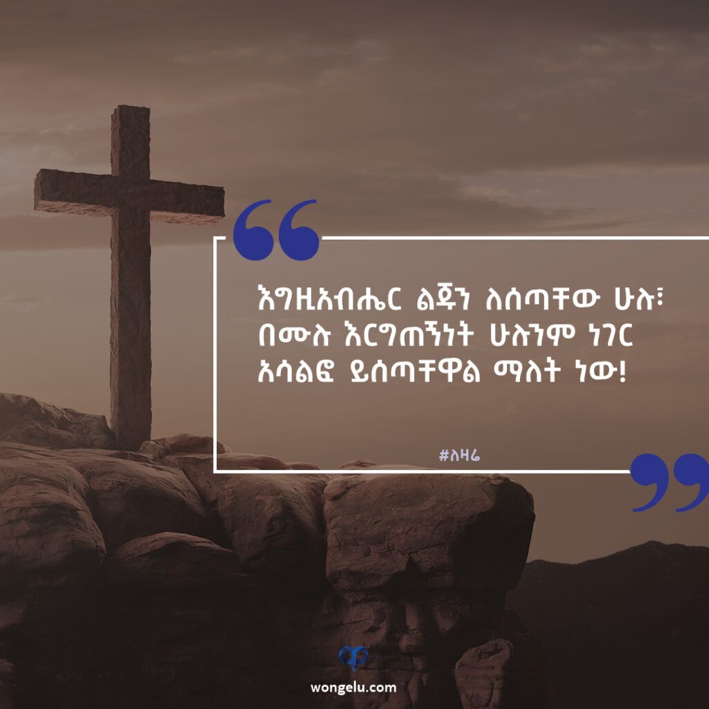 ታዲያ ይህ መሠረት ምንድን ነው? “ለገዛ ልጁ ያልሳሳለት፣ ነገር ግን ለሁላችንም አሳልፎ የሰጠው እርሱ…” መሠረቱ ይህ ነው። አንድያ ልጁን ሳይሰስት ሰጥቶናል! ታዲያ ይህ እውነት ከሆነ ይለናል የእግዚአብሔር ቃል፣ በሙሉ እርግጠኝነት ልጁን ለሰጣቸው ሁሉ ሁሉንም ነገር አሳልፎ ይሰጣቸዋል ማለት ነው!