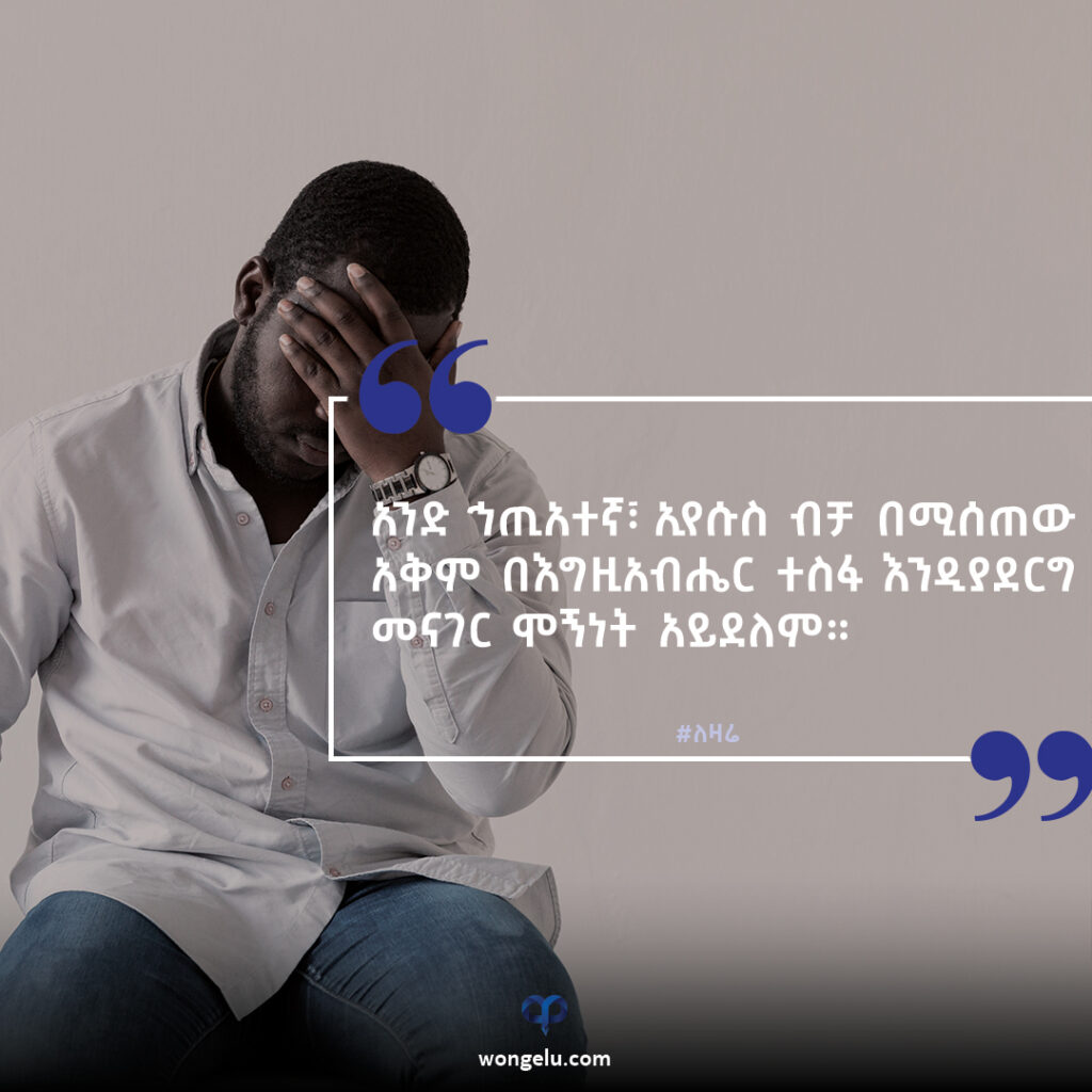 ጸሎት እንዲሁ በጨለማ ውስጥ ጥሩ የሚያስብልን እግዚአብሔር እንዳለ ተስፋ ማድረግ አይደለም። ጸሎት በእግዚአብሔር የተስፋ ቃሎች ላይ ይተማመናል፤ እግዚአብሔር ካከማቸው ጸጋም በየዕለቱ እንደሚያስፈልገው ይካፈላል።