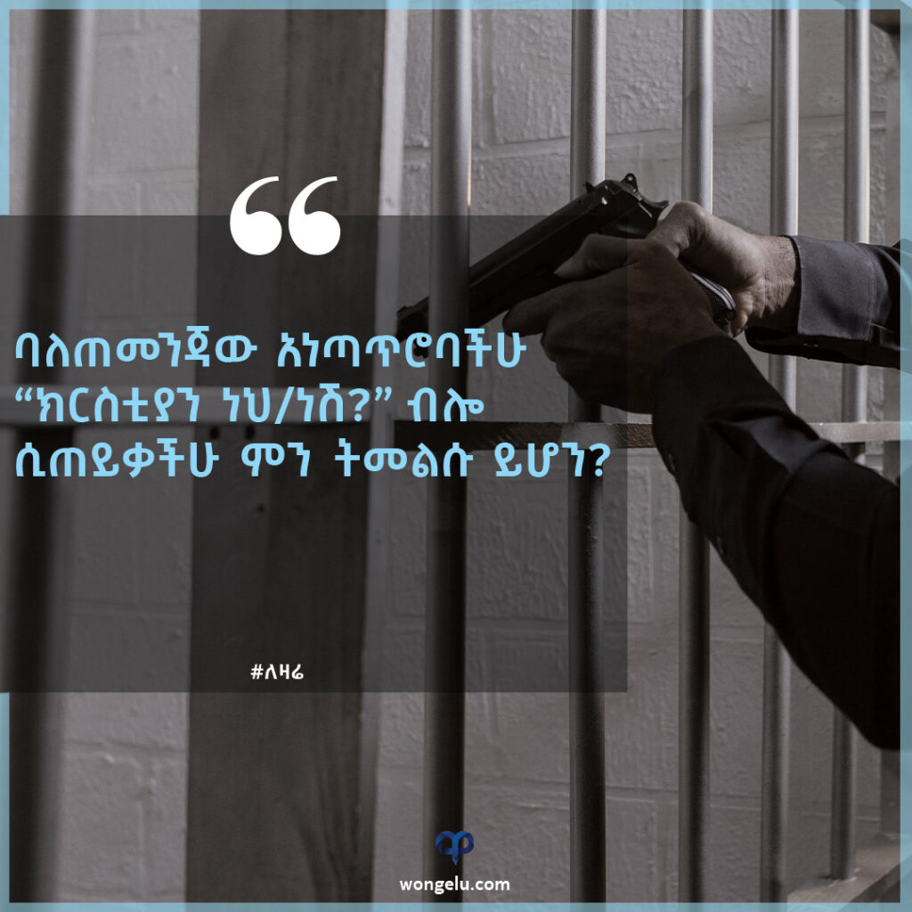 በመጨረሻው የመከራ ሰዓት ምላሻችሁ ምን እንደሚሆን አስባችሁ ታውቃላችሁ? ባለጠመንጃው አነጣጥሮባችሁ “ክርስቲያን ነህ/ነሽ?” ብሎ ሲጠይቃችሁ ምን ትመልሱ ይሆን? አሁን ከምትገምቱት በላይ ምላሻቸሁ መልካም እንዲሆን ተስፋን የሚሰጣችሁ ብርቱ ቃል አለላችሁ።