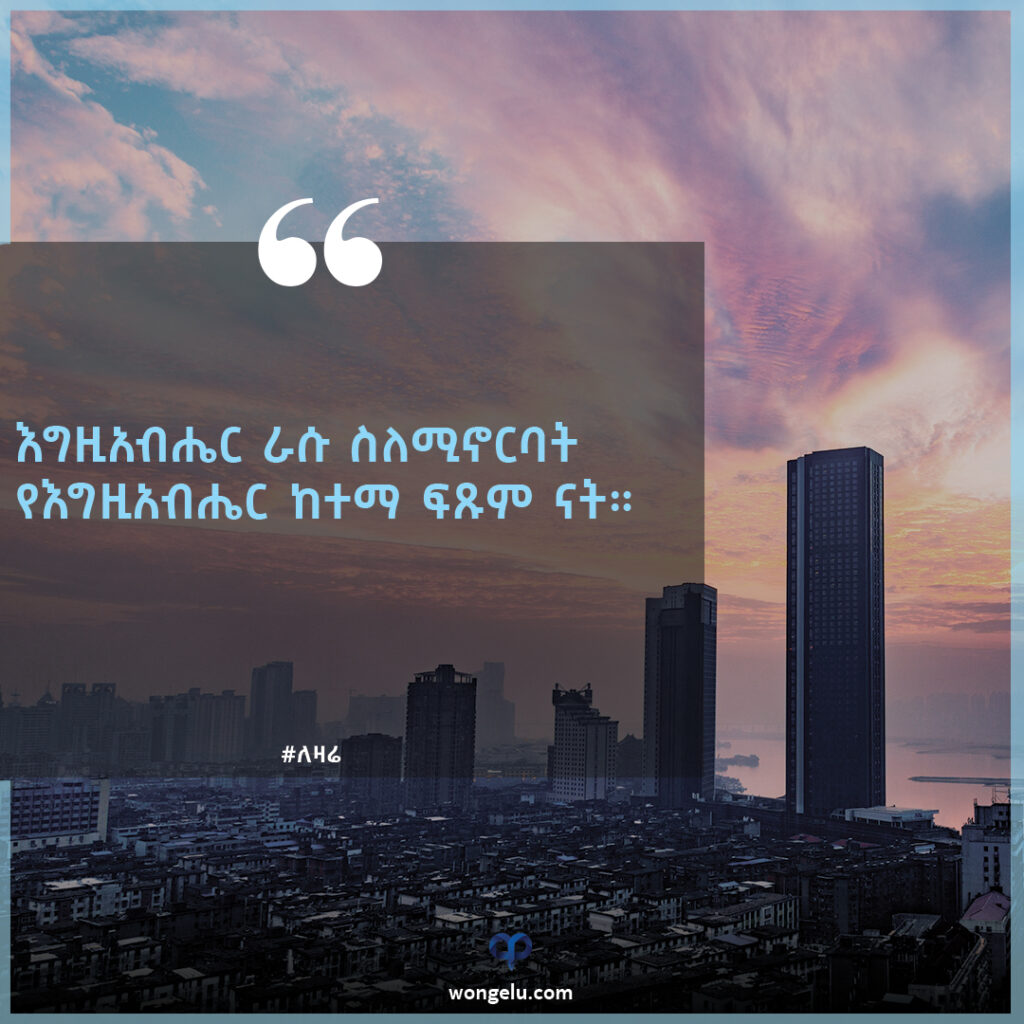 በዚህ ምድር ላይ ካለ ከየትኛውም ነገር አስበልጣችሁ ይህችን ከተማ ስትፈልጉ፣ በዕብራውያን 11፥10 ላይ እንደተጻፈው፣ ይህችን ከተማ ያቀዳትን እና ያበጃትን እግዚአብሔርን ታከብራላችሁ። እግዚአብሔር ሲከብር ደግሞ ደስ ይለዋል፣ አምላካችሁም ተብሎ ሊጠራባችሁ አያፍርም።
