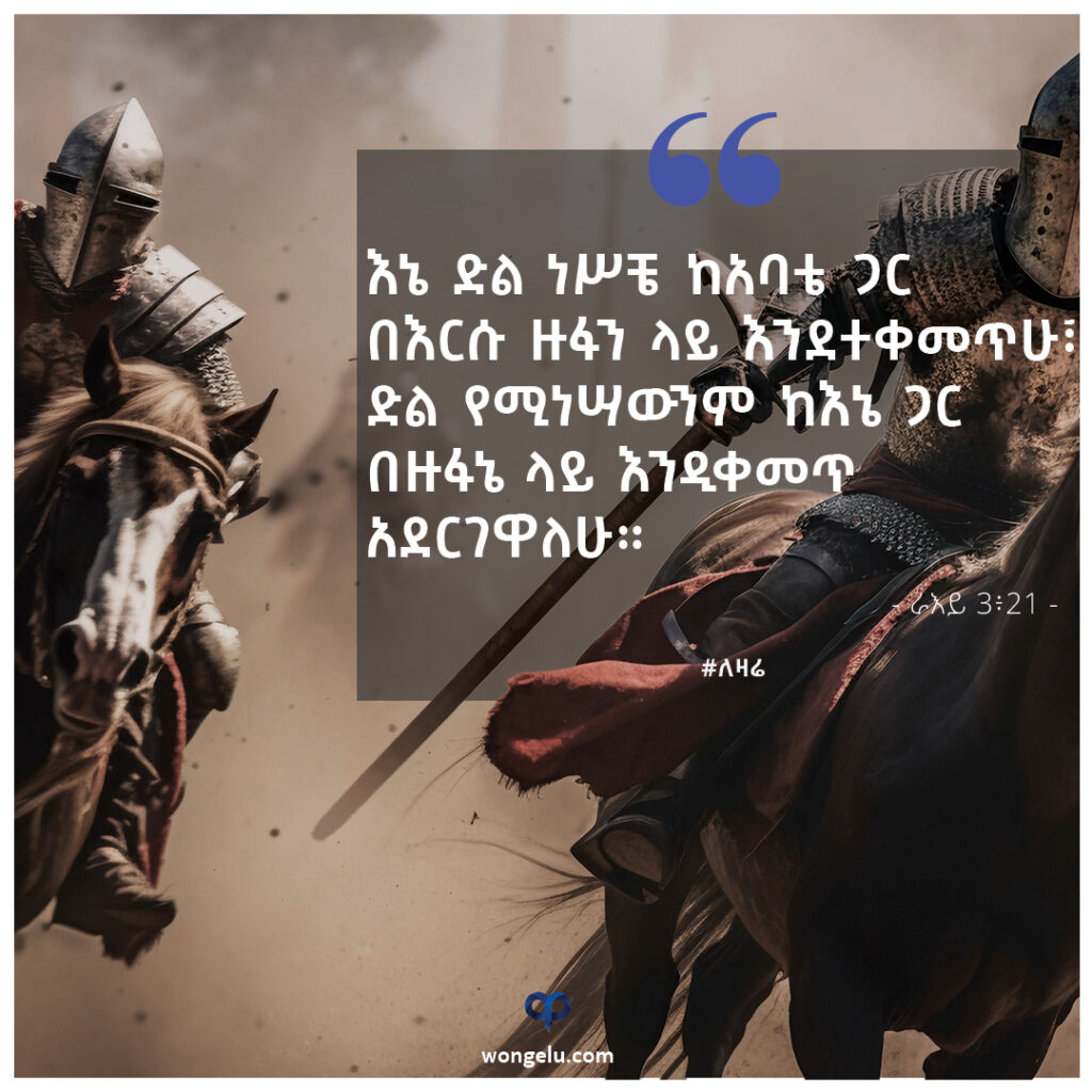 “እኔ ድል ነሥቼ ከአባቴ ጋር በእርሱ ዙፋን ላይ እንደ ተቀመጥሁ፣ ድል የሚነሣውንም ከእኔ ጋር በዙፋኔ ላይ እንዲቀመጥ አደርገዋለሁ።” (ራእይ 3፥21)